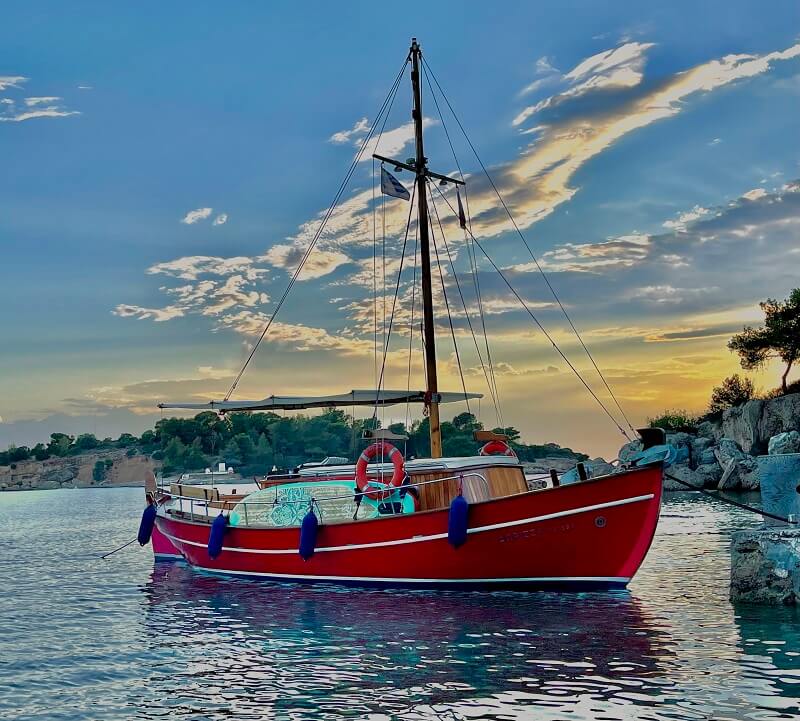Our boat is handmade (made in Spetses) by greek technicians, and its based on the designs of ancient greek skulls of previous centuries.